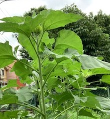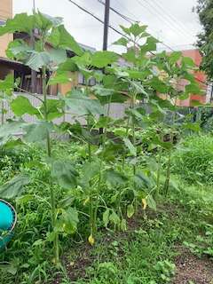 5月に植えたヒマワリの茎が太くなり,葉も大きくなりました。