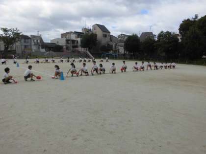 今日のスポーツ大会の練習では,初めて運動場に出て,入場のダンスの位置の確認をしました。だんだんと上達し,かっこよく踊れるようになってきました。