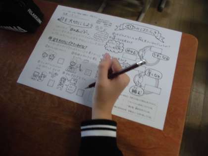今日は保健の日の学習をしました。「目を大切にしよう」というテーマで学習し,自分の生活を振り返りました。テレビやゲームの時間,早寝早起きなど,どんなことに心がけたらいいかを知ることができました。