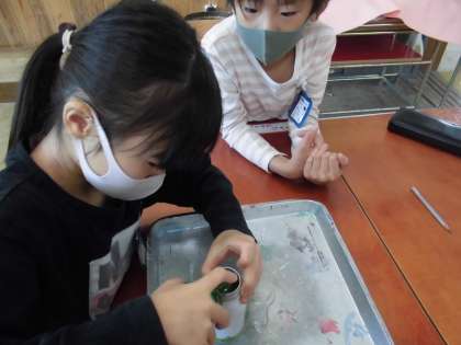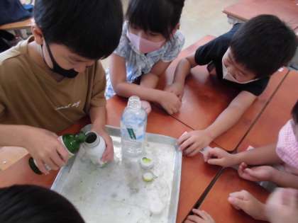 グループごとに協力しながら,かさをうまくくらべることができました。