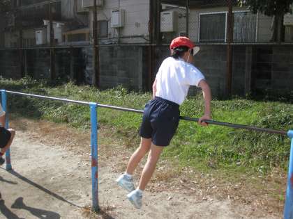 今日から鉄棒をしています。