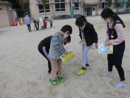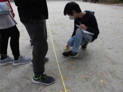 算数科で学習した「平均」を使って自分の歩幅を調べました。