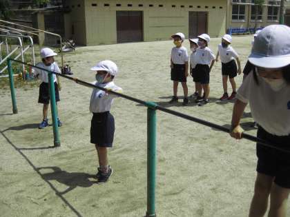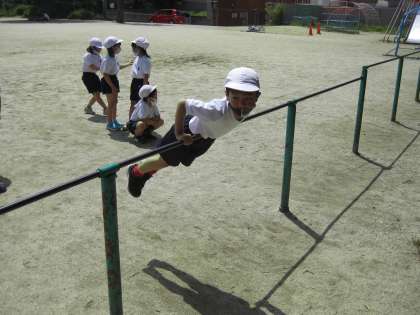 今日は体育でてつぼうあそびをしました。