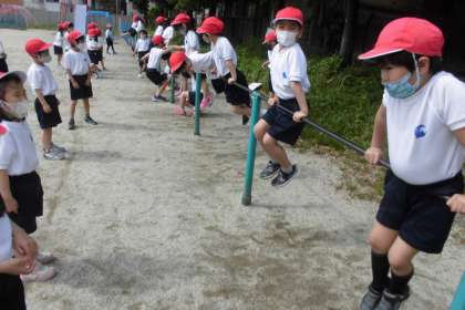 体育の学習は,今日から「てつぼうあそび」です。