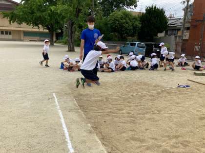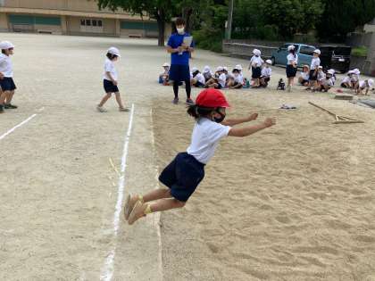 今日の5時間目に新体力テストの立ち幅跳びを行いました。
