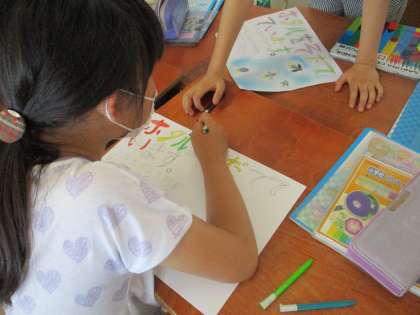 総合で,3年生がホタルを育てていることを知らせるための看板づくりを進めています。