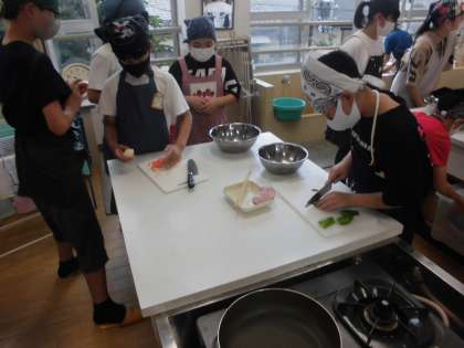 グループで協力して調理をしていました。