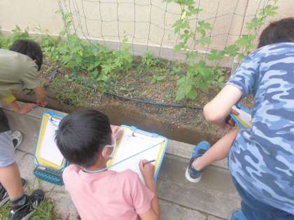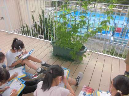 理科の「季節と生物」の学習では,ツルレイシの観察をしました。春に植えたツルレイシがぐんぐん大きくなってきました。さらなる成長が楽しみですね。