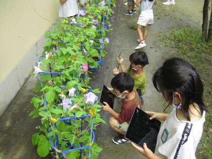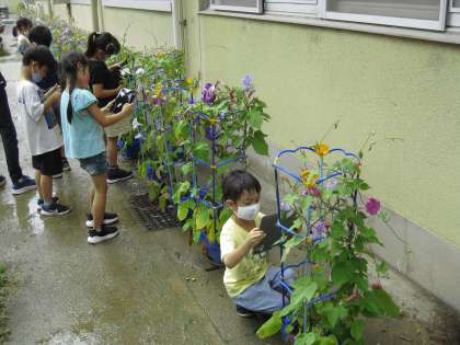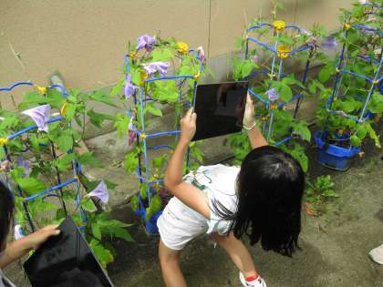 自分のアサガオの写真を撮影し
