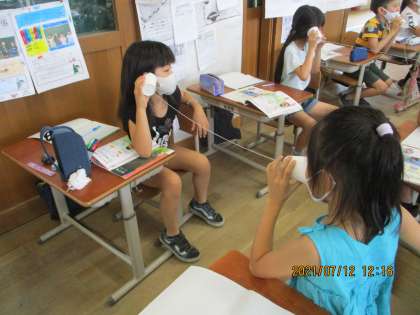理科の時間に,紙コップで糸電話を作っていました。