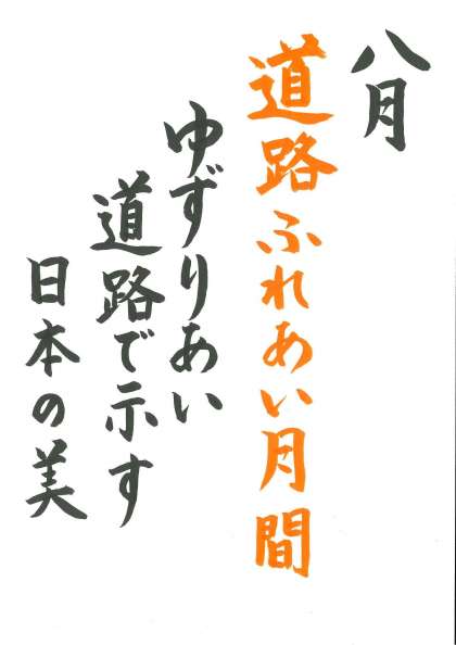 さて,国土交通省では毎年8月を「道路ふれあい月間」として,道路を利用する方々に,道路とふれあい道路の役割や重要性を改めて認識していただき,愛護活動や道路の正しい利用の啓発活動等を特に推進することとしています。安全に道路を利用できるよう学校でも指導していきたいと思います。ご家庭でも登下校の仕方など話題にしていただければと思います。