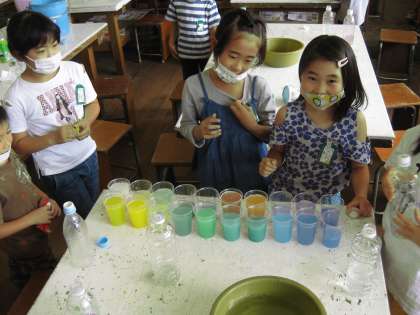 いろいろな色水を作り,
