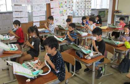 音楽科の時間には,リコーダーやけんばんハーモニカを使って,合奏の練習をしています。