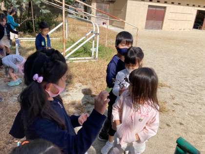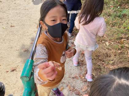 学校の中にある,落ち葉や,どんぐりなどたくさんの秋を見つけていました。