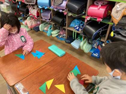 どんどん新しい形がひらめき,2人組でいろいろな形を作っていました。