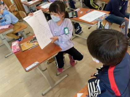 隣の席の友達に,考えた形を見せ合いました。