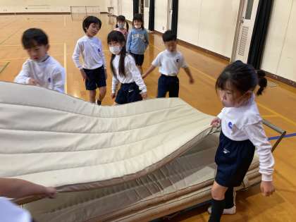 マットを運んで準備するのも,協力して上手にできるようになりました。