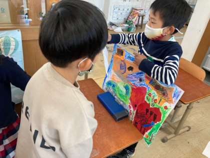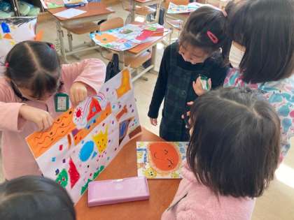「いろいろな かたちの かみから」の学習で,仕上げた作品の鑑賞会をしました。