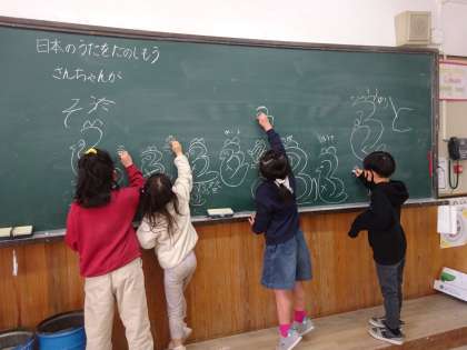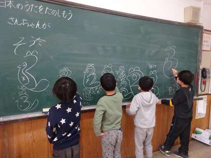 「にほんのうたを たのしもう」では,「さんちゃんが」という
