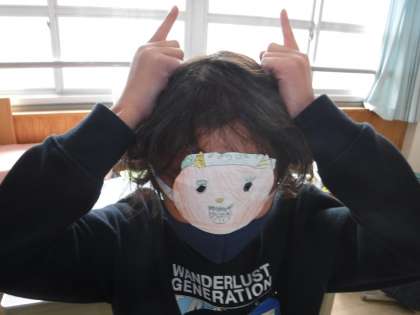 今日は,節分です。そこで,本係さんが,おにが出てくる「それからのおにがしま」という本を読み聞かせしてくれました。また,鬼のお面を作って,おにごっこを楽しむ子もいました。