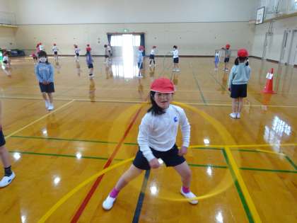 「ゆっくりかけあし」をした授業の後半は,「ようぐあそび」をしました。
