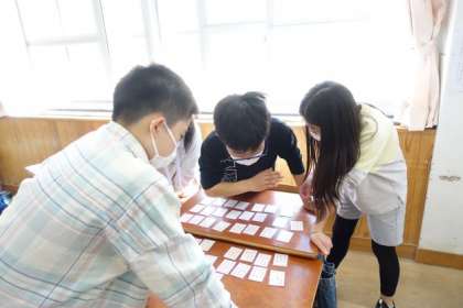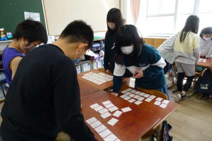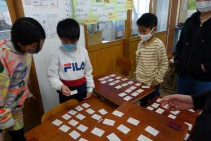 国語の学習で百人一首に挑戦してみました。最初は苦戦していた様子でしたが,慣れてくるとだんだん取るのが早くなってきました。