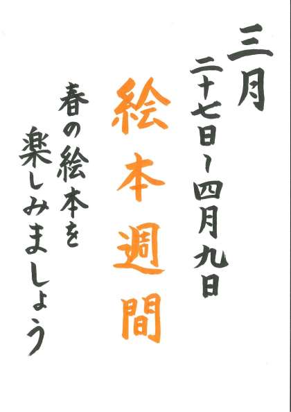 さて,3月27日から4月9日は,「絵本週間」です。これは,アンデルセンの誕生日で「国際子どもの本の日」である4月2日の前後2週間を教育の場や家庭にいっそう「絵本読書」が定着することを願って設けられたそうです。新年度の準備等,何かとあわただしい春休みですが,お子達と一緒に絵本読書を楽しんでみられてはいかがでしょうか。新しい発見があるかもしれませんね。