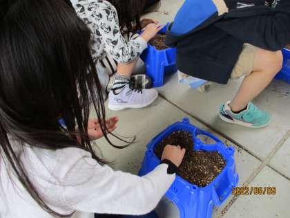 先日,一人一つの植木鉢に,あさがおの種を植えました。ふかふかの土に指で穴をあけ,その中にそっと種を入れました。これからどのように育っていくのか,みんなとても楽しみにしているようです。