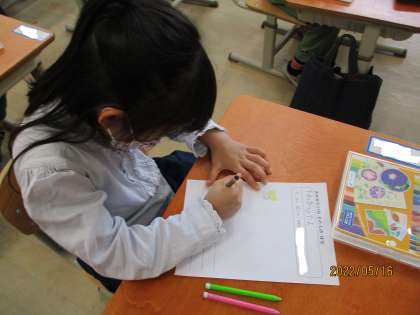 月曜日の朝,あさがおの様子を見に行ってみると,びっくり!芽が出ていました。毎朝水やりを頑張っています。生活科の学習では,種を植え芽が出た様子を観察カードに書きました。絵と言葉で丁寧に表せていました。これからのあさがおの成長も楽しみですね。