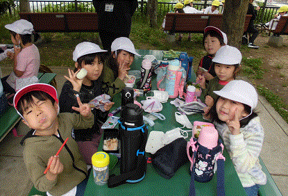 お弁当は,グループに分かれて食べました。お家の方の愛情たっぷりのお弁当,みんなすぐに完食していました。