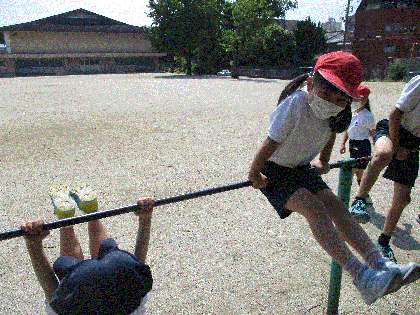 体育の学習で,てつぼうあそびを始めました。