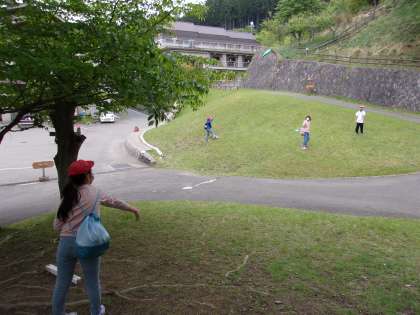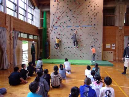 まず,5年生はフライングディスク,6年生はボルダリングに挑戦です。みんな山の家の活動を満喫しています。
