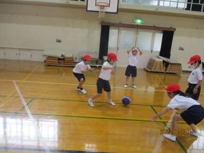 今日は,4月から取り組んできたころがしドッジボールの最後の日でした。「やったぁ,当たった!」「危ない!逃げて逃げて!」など,どのチームも白熱していました。