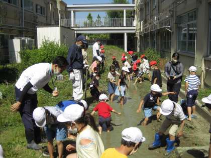 楽しく田んぼを踏んでいました。