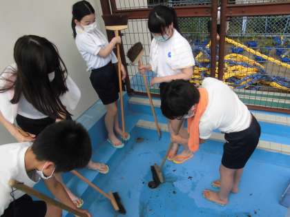 ほうきで落ち葉を集めたり,荷物を運んだりとプールをきれいにするために,熱心に取り組む姿が素敵でした。