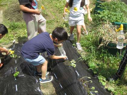 サツマイモに水をあげています