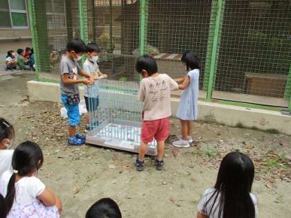2年生に教わったことをもとに、自分たちでもお世話のしかたを練習しました。ゲージの中に新聞紙を敷いたり、ご飯や水の量を考えたり、やることはたくさんありますが、どの子もやる気満々の様子ですね。