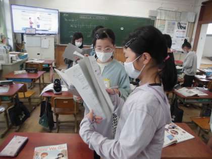 外国語の学習では、休日の過ごし方や起きる時間・寝る時間についてたずね合いました。