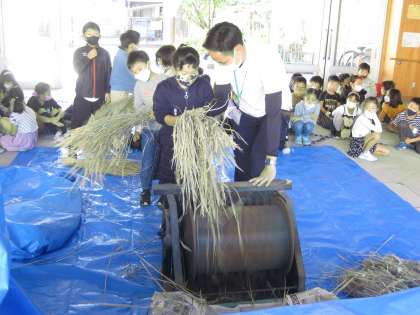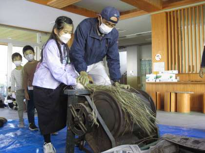 このあいだ刈った稲の脱穀をしました。