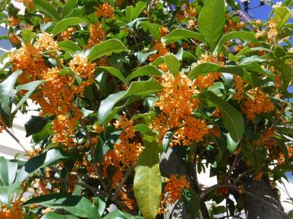 「キンモクセイだ!」と、キンモクセイに近寄って香りを嗅いでいました。この時期ならではの、すてきな秋を見つけました。