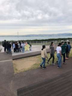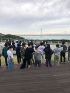明石海峡大橋を渡って休憩です。きれいな景色に感動です。みんな元気です。