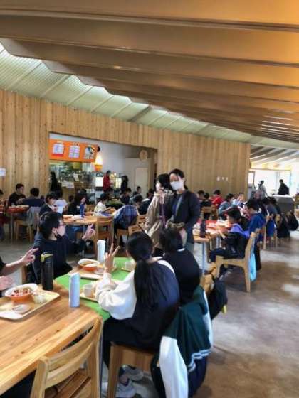 あすたむらんどでの昼食です。吉野川めぐりの後は、アスレチックなどで体を動かしたのでお腹が空いたようです。美味しくいただきました。