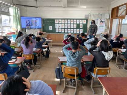 3学期になって最初の外国語の学習を、ALTの先生と一緒に取り組みました。