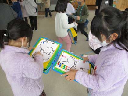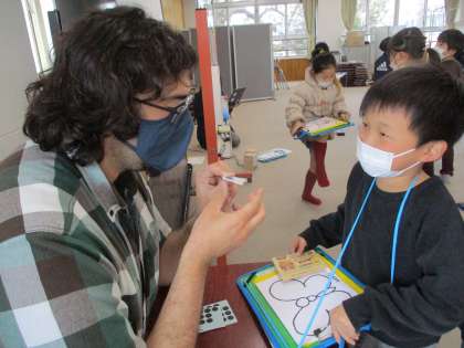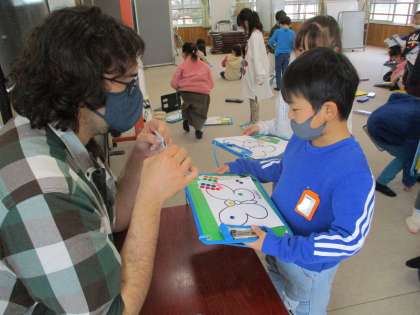 今日は英語活動の時間に、欲しい色を相手に伝え、自分のちょうちょを作る活動をしました。友達とお互いに声を掛け合い、"Blue,please."など、英語で上手にやり取りしていました。また、ALTの先生にも積極的にコミュニケーションを取りに行く姿も見られました。これからも外国語に親しみ、楽しく学んでいってほしいと思います。