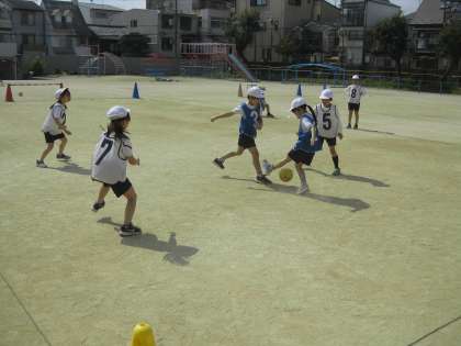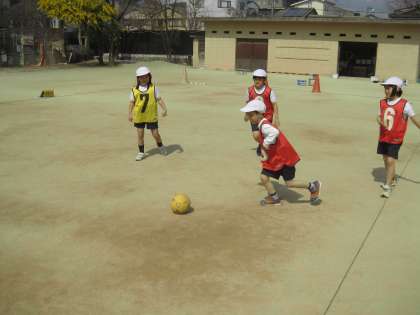 ボールけりゲームを外でしました。