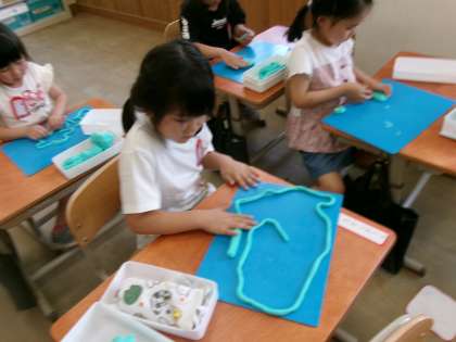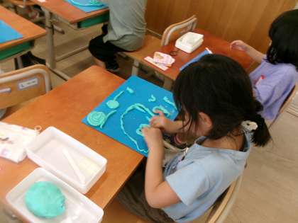 図画工作科で、「ひもひもねんど」の学習をしました。