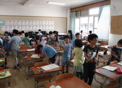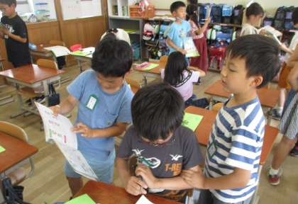 英語の学習で、“How are you?”を使って、友達とお互いの様子を尋ね合いました。