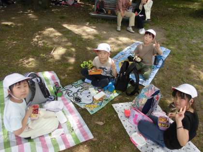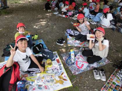 朝から「お腹空いた〜」と言っていた子どもたちは、お家の人が作ってくれたお弁当に目を輝かせていました!