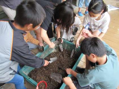 理科の学習で、ツルレイシとヘチマの種を植えました。どのように育っていくのかがとっても楽しみですね。