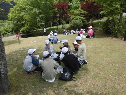ナイトハイクの下見が終わって昼食の時間です。みんな美味しくいただいています。午後は、スコアオリエンテーリングで楽しみます。